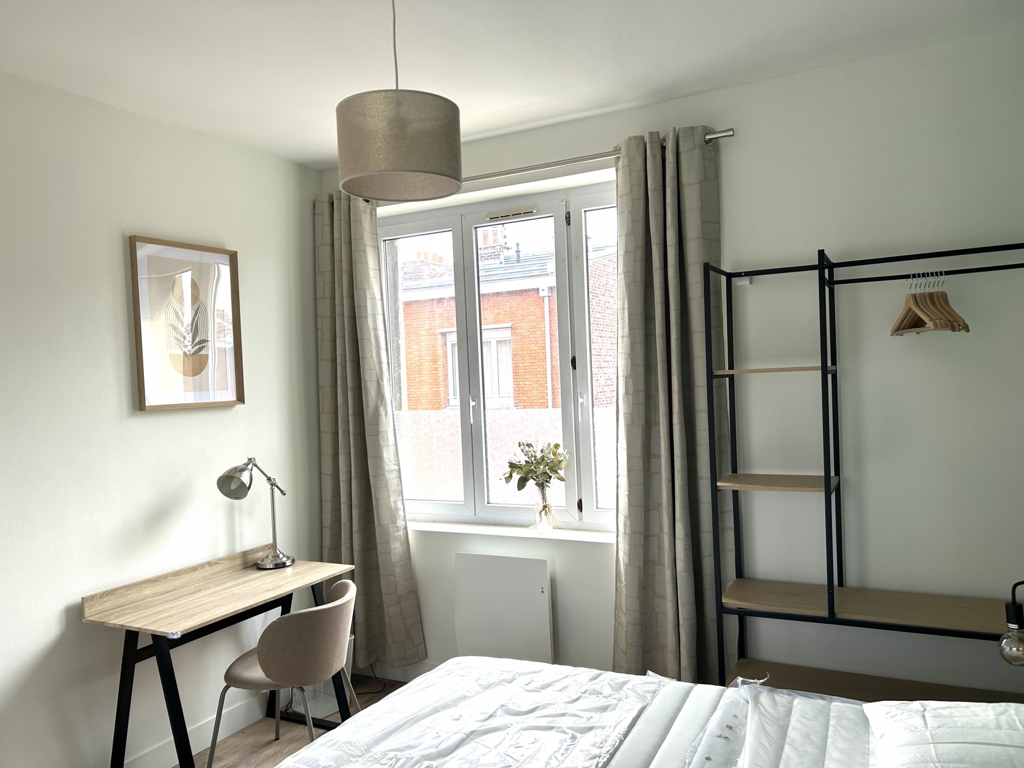La chambre séparée, se compose d'un grand lit double (160 x 200), d'un bureau et d'une penderie. Vous trouverez une jolie salle de douche neuve.